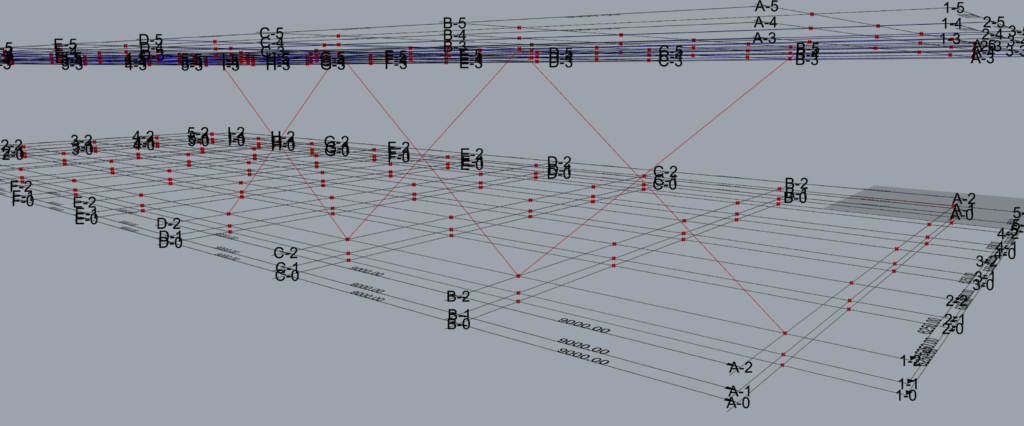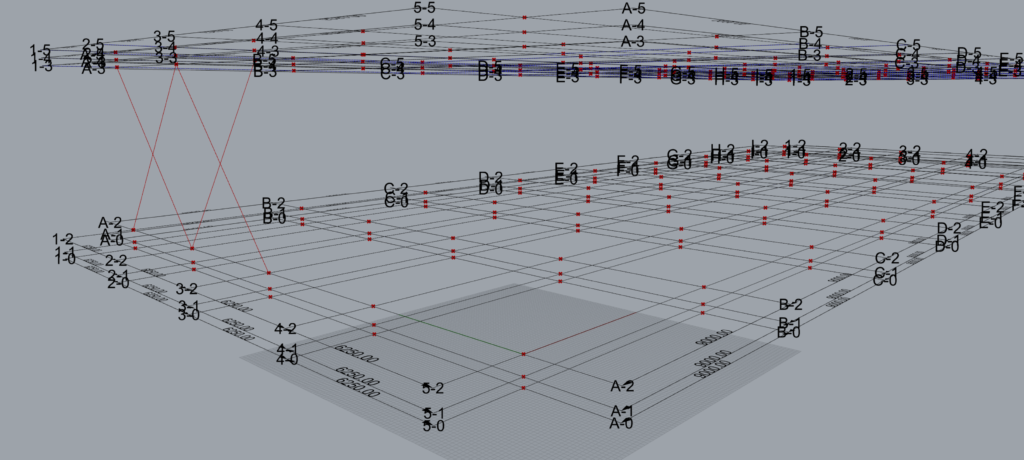 For e.g. looking at the gridlines defined in the case study- ‘TM Steel Portal Frame’, the name property of grid line-‘A’ modelled at Rhino Z=0 is ‘A-2’.