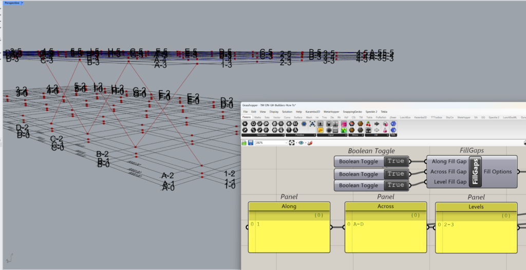 The gridline labels and their locations in terms of elevations are then used by certain inputs of the builder components which are: