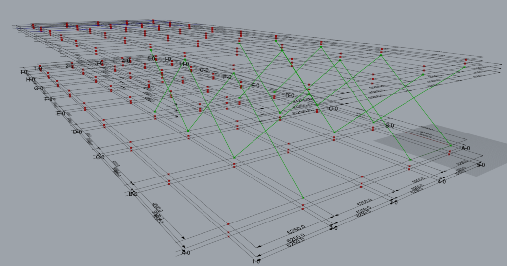 As shown above x Braces have been modelled on Grid 1.