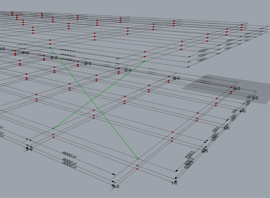 | Group 2 | Along | 2,4,5 | This input creates 3 sets of braces on grid 2,4 & 5 in between grids B & C from levels 2 and 3. Set 1: Between grids B & C, on grid 2. Set 2: Between grids B & C, on grid 4. Set 3: Between grids B & C, on grid 5. |