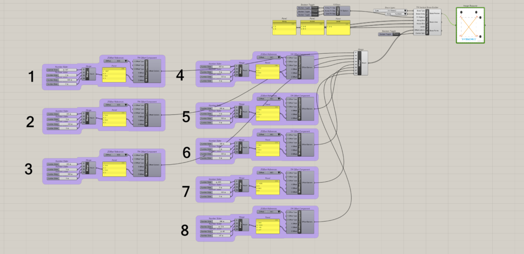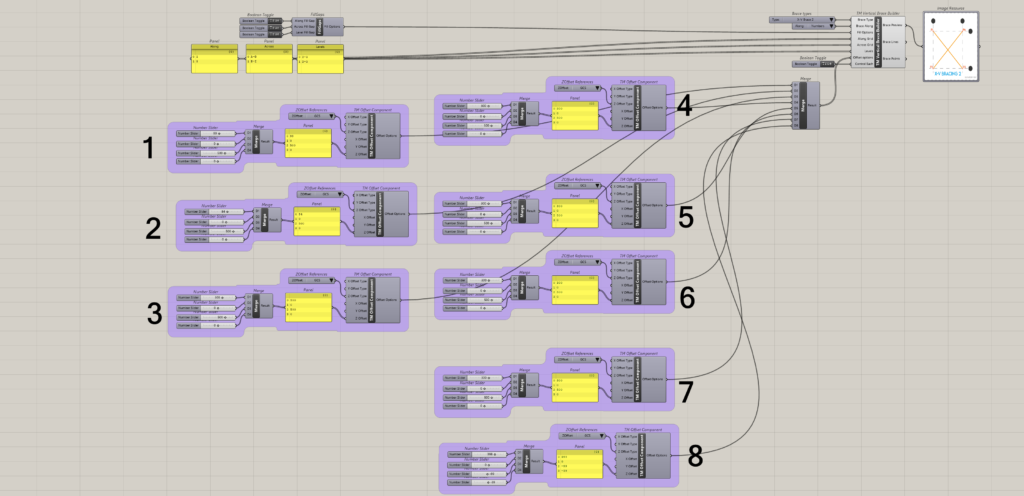 It can be seen that eight ‘TM Offset’ component control the offsets for 8 sets of braces respectively.
