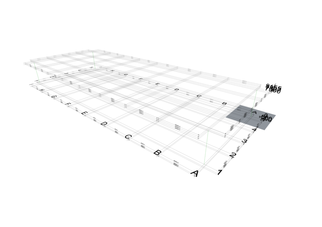 - Input 1 creates column lines along grid 2 across grid A & I between levels 2 & 4.