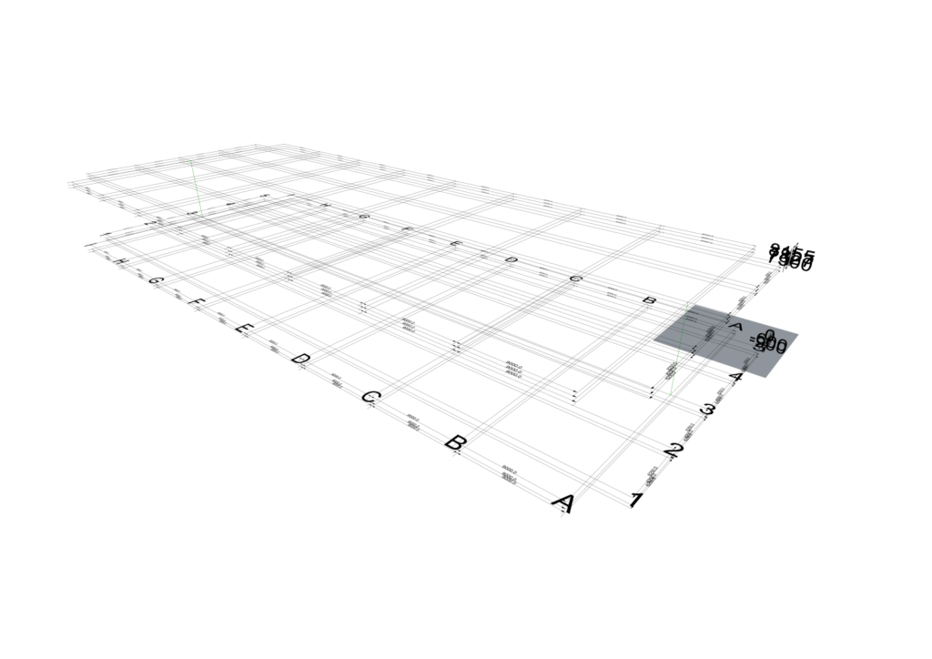 - Input 1 creates column lines along grids 3, across grid A between levels 2 & 5.
