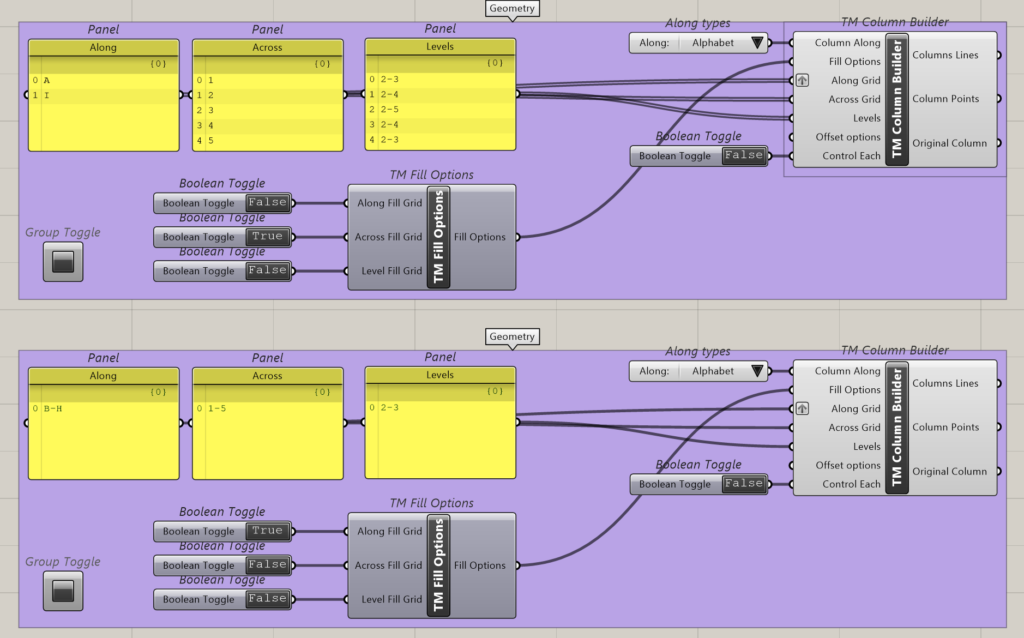 Takes the name of gridlines either-alphabets or numbers. The grasshopper component ‘Panel’ may be used for the same.