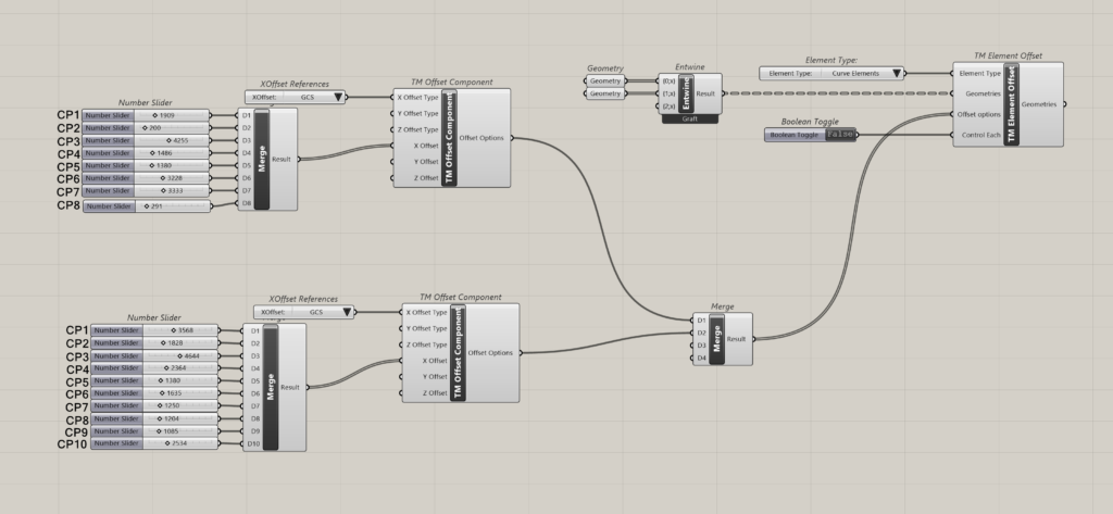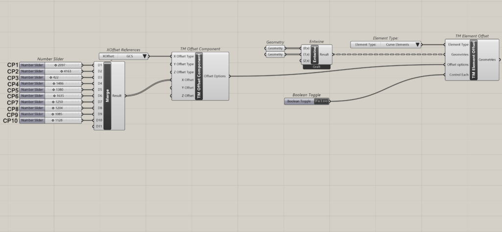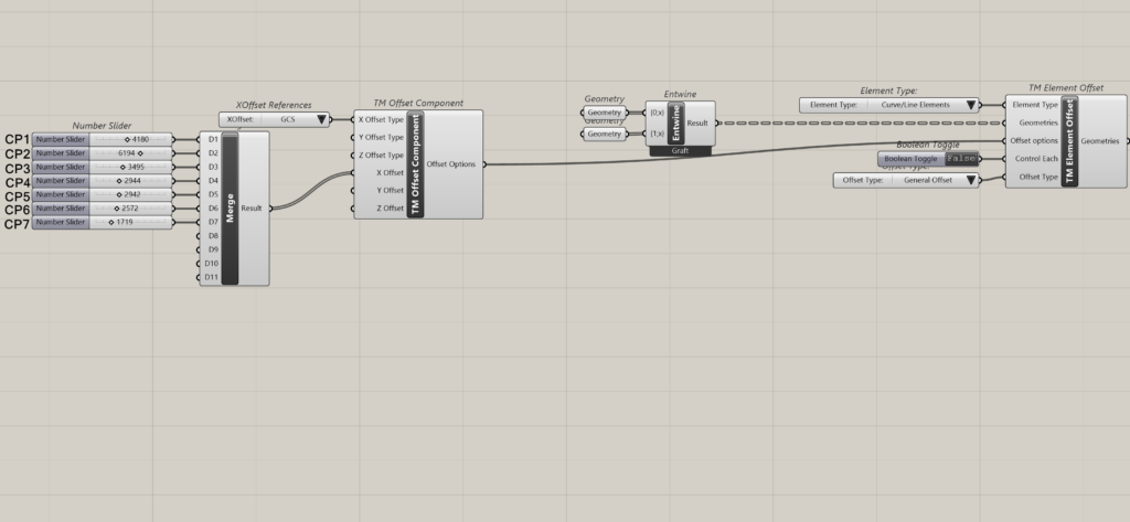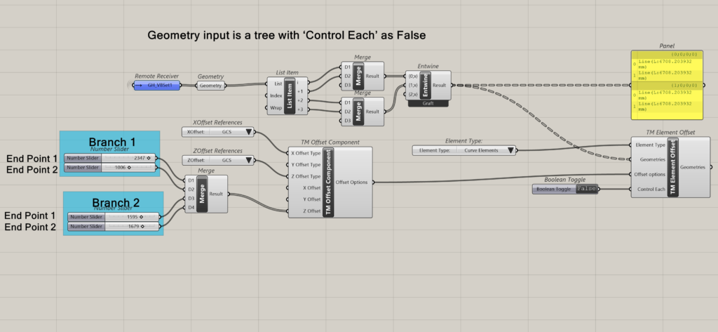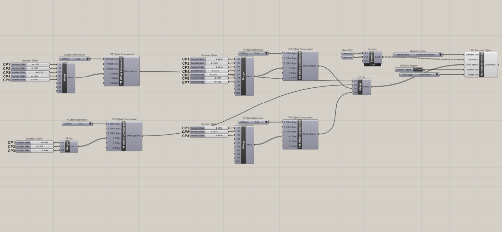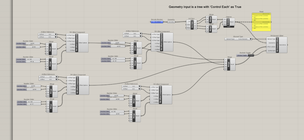 In this scenario, only one ‘TM Offset’ Component need be attached to control all the geometries together.